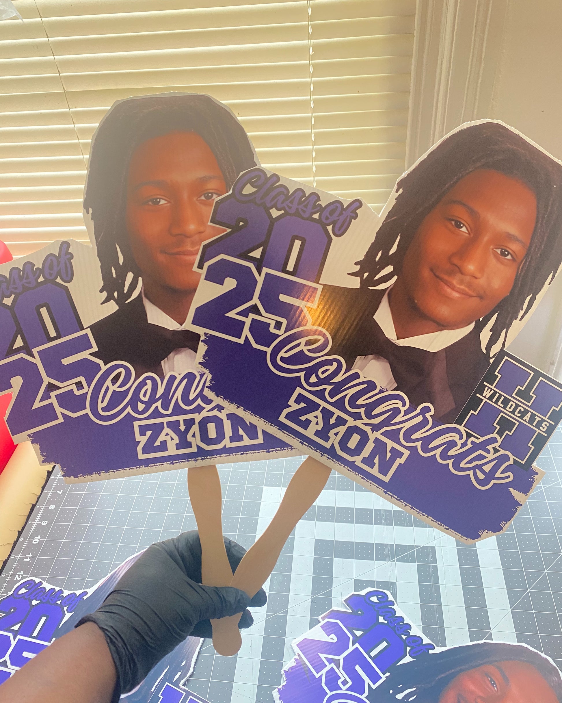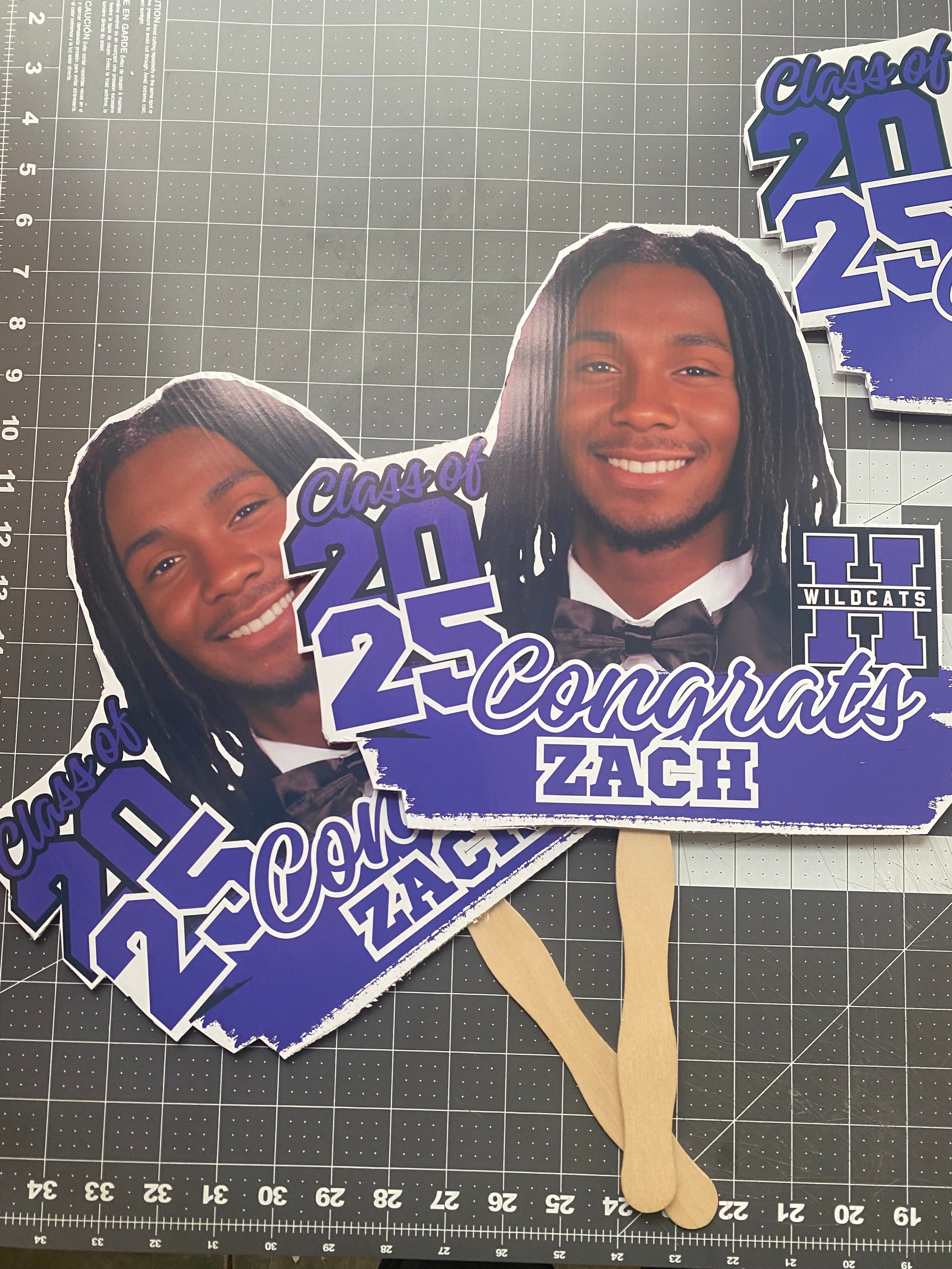 Enhance your graduation ceremony with our Big Head Fans. Made with sturdy cardboard measuring 12x18, these fans are perfect for showing off school pride and keeping you cool. Celebrate in style with our durable and unique Big Head Fans.